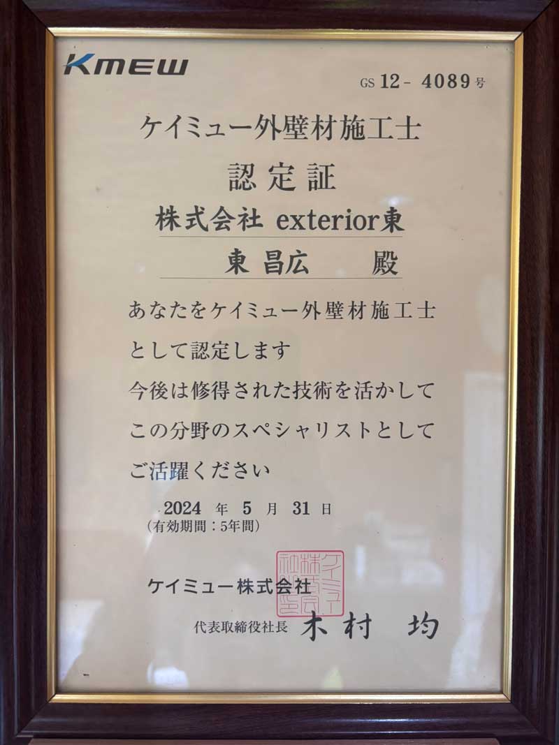 ケイミュー外壁材施工士GS12-4089号