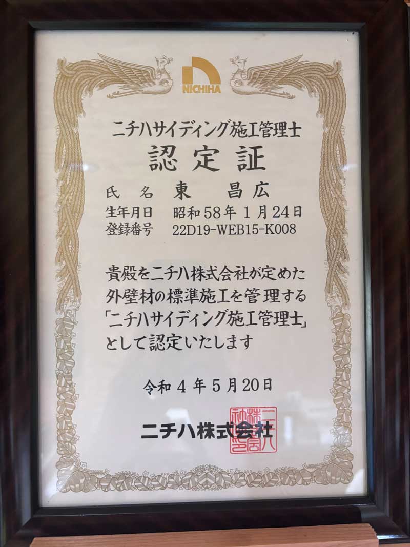 ニチハサイディング施工管理士22D19-WEB15-K008